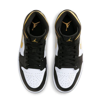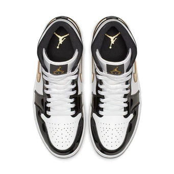 Jordan 1 Mid Patent Black White Gold