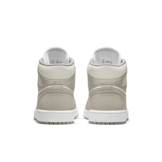 La tomaia in pelle bianca della Jordan 1 Mid Linen è impreziosita da sovrapposizioni e Swooshes College Grey. I colpi di lino sul colletto creano un sottile contrasto. Il design è completato con etichette e suole in tessuto simili.
