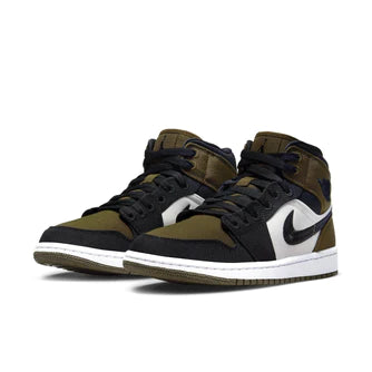 La Air Jordan 1 Mid SE "Olive Toe" da donna dà nuova vita alla silhouette classica con una struttura rinnovata. Al posto della tradizionale costruzione in pelle, la tomaia è realizzata in tela traspirante, con pannelli laterali bianchi con rivestimento nero dell'avampiede e uno Swoosh ricamato nero abbinato. Gli accenti verde oliva si fanno strada sulla punta, sul tallone e sulla patta del colletto, contrassegnati da un logo Wings retrò sul lato laterale. L'ammortizzazione Encapsulated Air-sole migliora l'intersuola in gomma bianca, supportata sotto i piedi da una suola in gomma verde oliva.